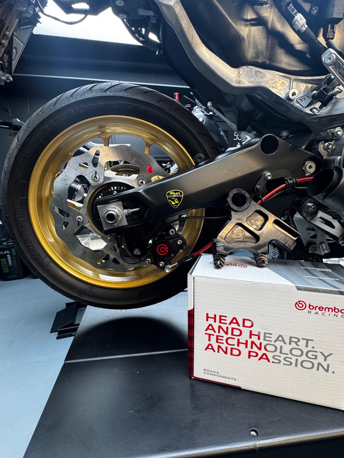 Supporto freno posteriore per pinza assiale Brembo P2 ,per disco misura originale con disegno originale o disegno a margherita