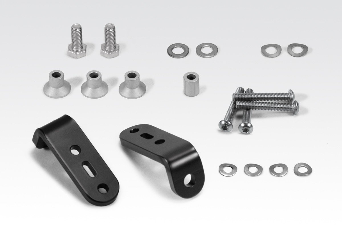 Kit completo di specchio destro e sinistro, covers per chiudere i fori lasciati dagli specchi originali, supporti, minuteria ed istruzioni di montaggio.